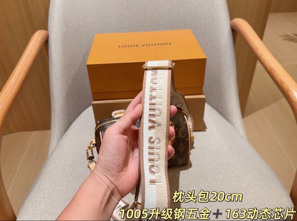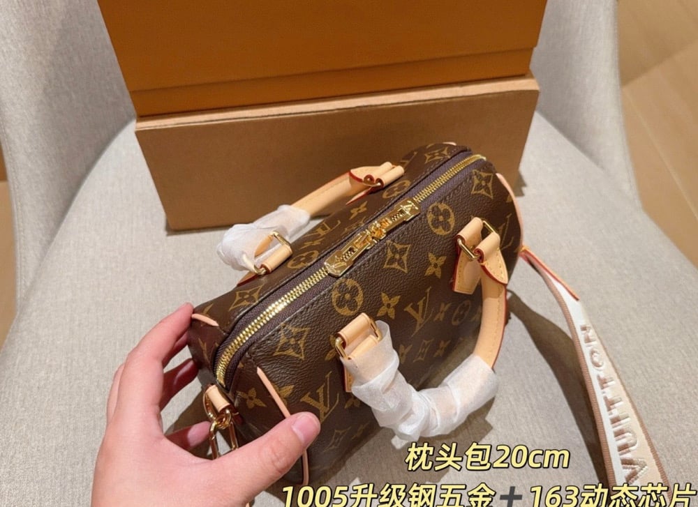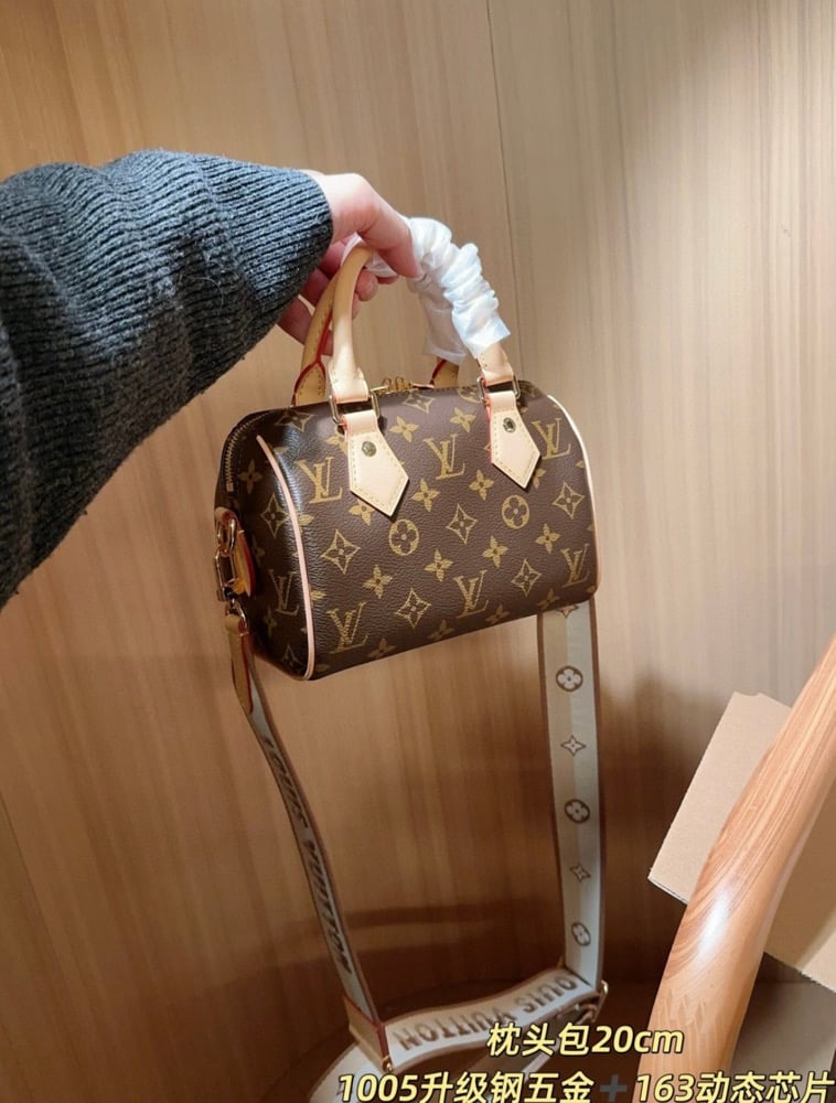 A smaller version of the iconic Speedy, featuring a wide, sporty "Louis Vuitton" jacquard textile strap.